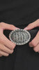 The god Apollo is surrounded by his nine Muses — goddesses embodying the arts. This monumental buckle is rendered in precious solid Sterling Silver, and secured on a weighty Tuscan leather strap.